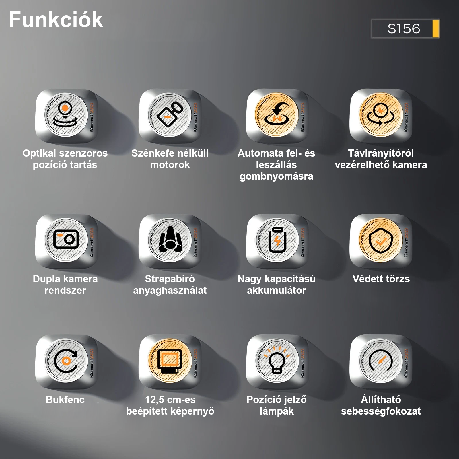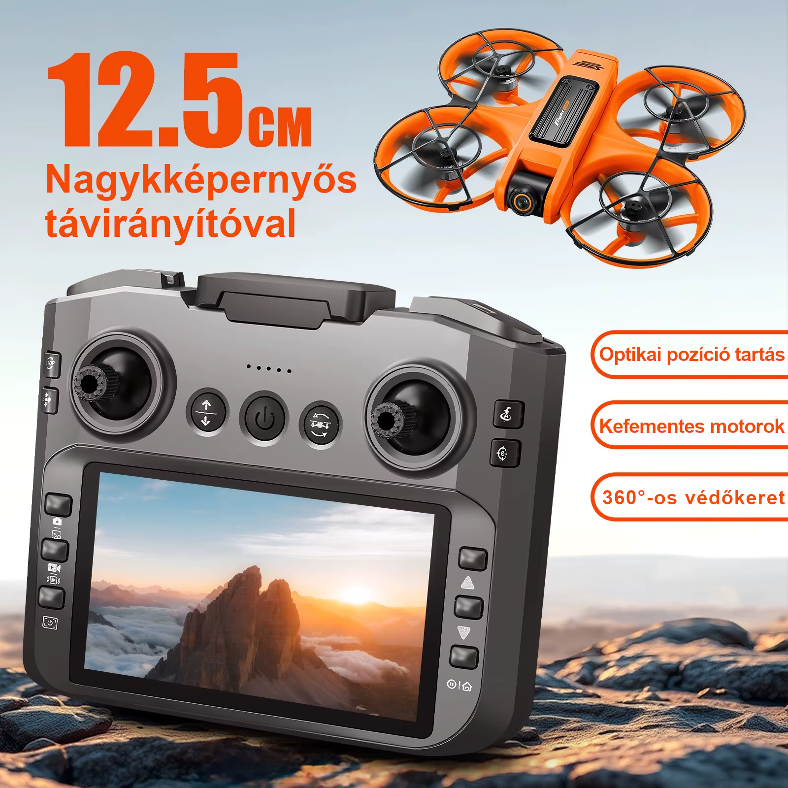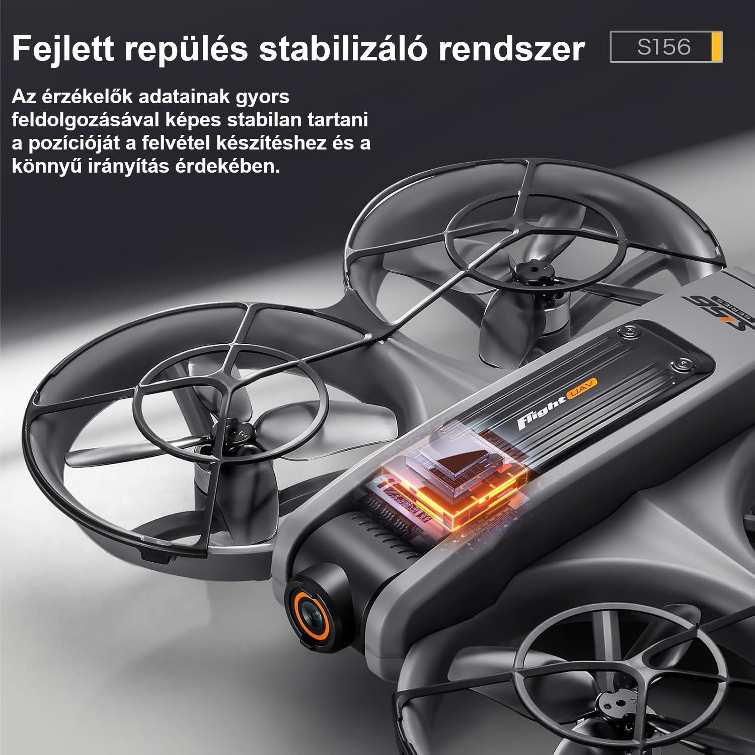 YLr/c S156 védőkeretes Brushless motoros drón, nagy méretű saját kijelzővel, dönthető kamerával, opt. szenzorral, hordótáska.