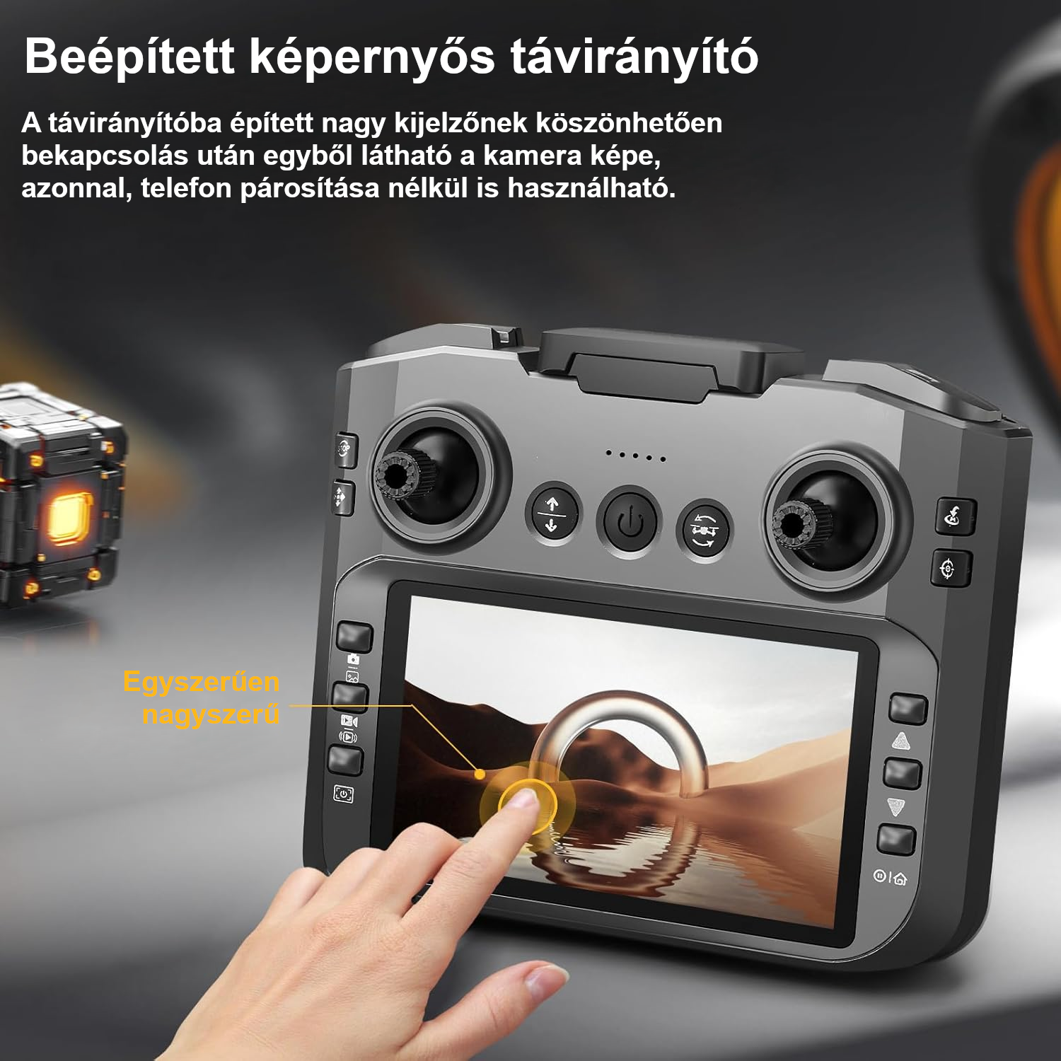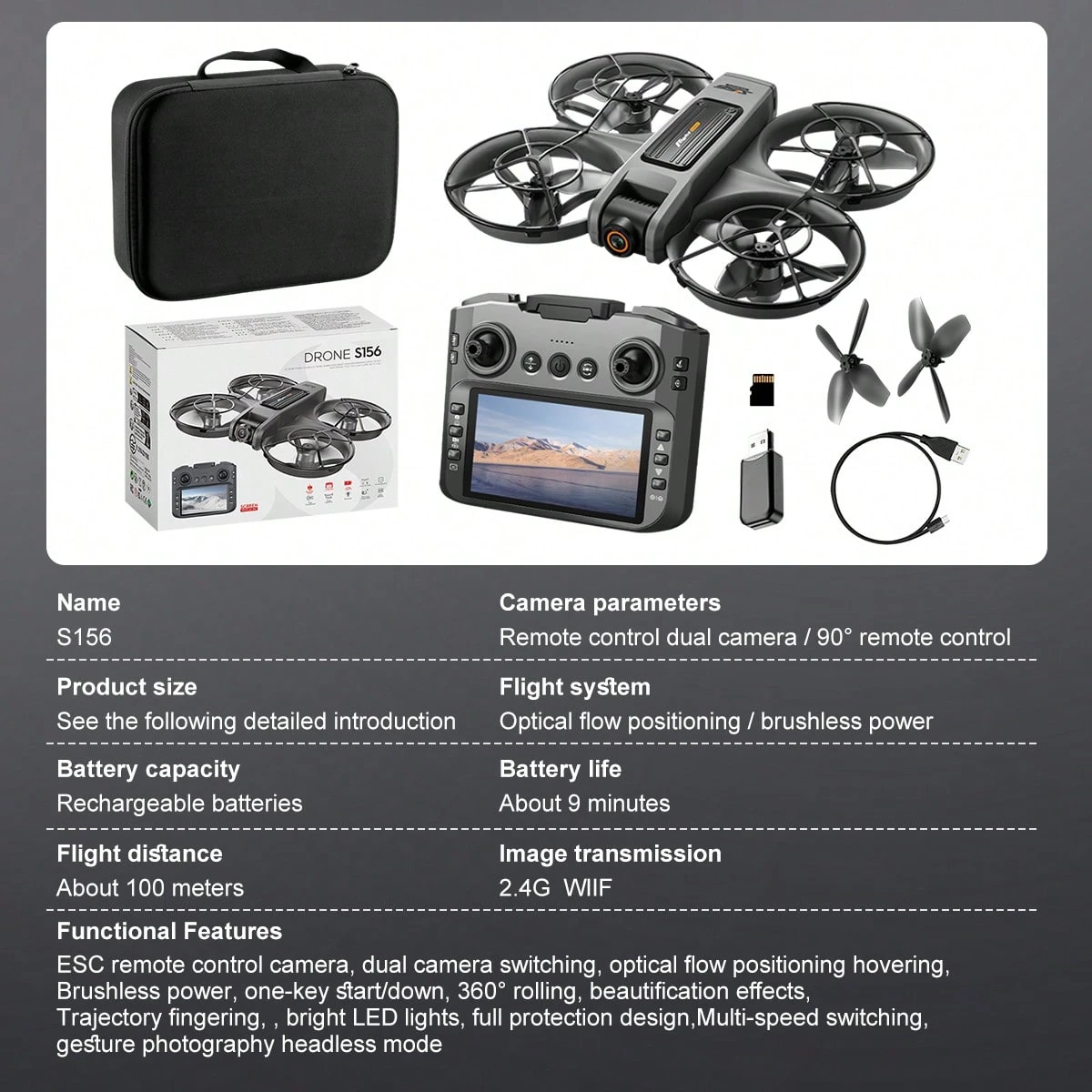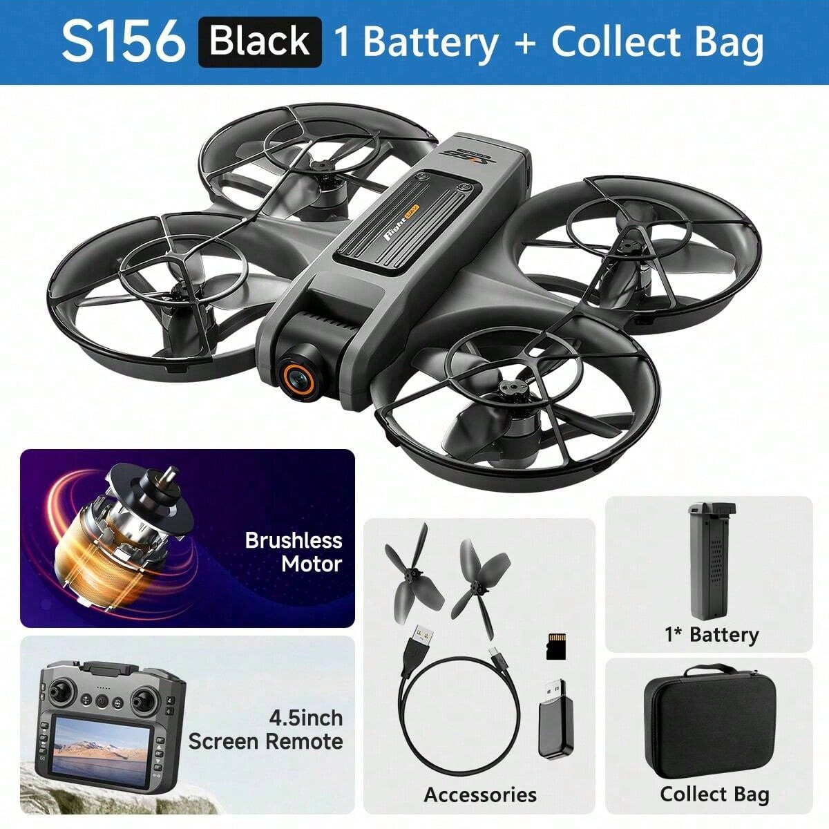 YLr/c S156 védőkeretes Brushless motoros drón, nagy méretű saját kijelzővel, dönthető kamerával, opt. szenzorral, hordótáska.